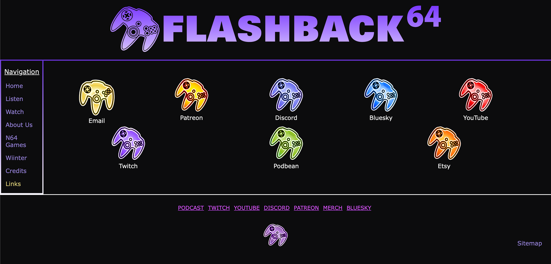 For this project, I provided the main logo (with several color and type variations depending on the application) and alternate logos for the podcast Flashback 64.