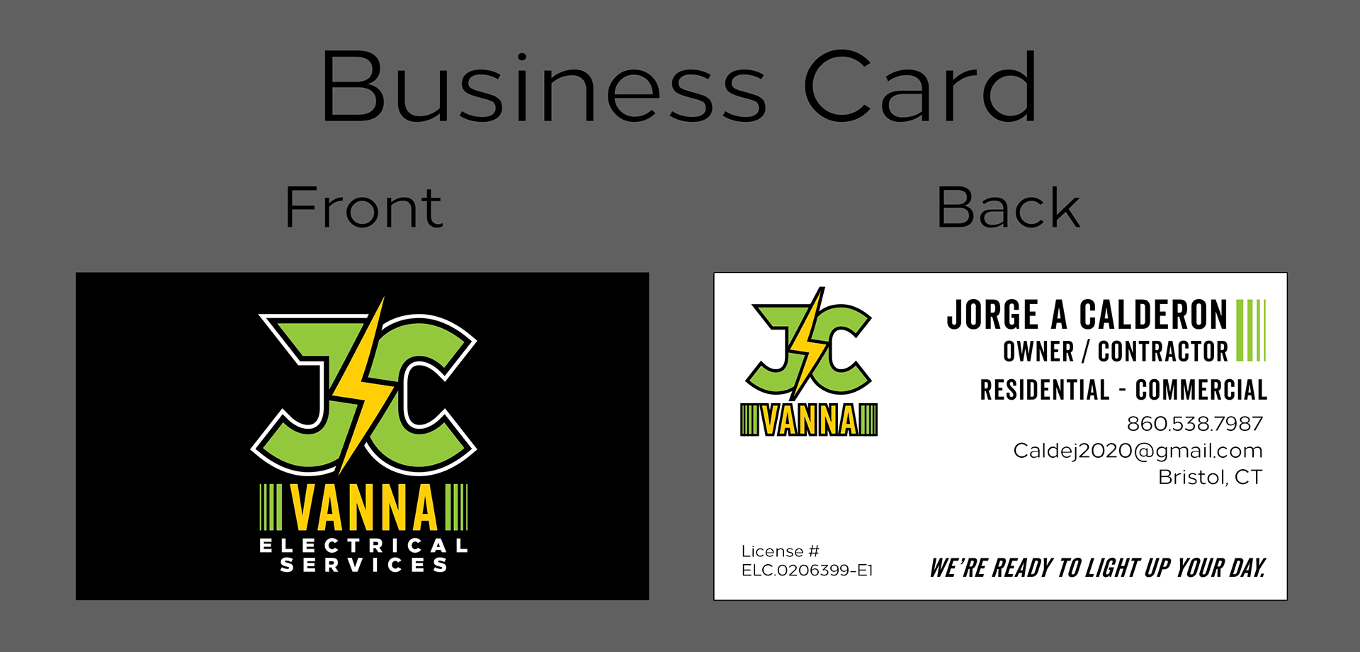 This project was a full corporate identity/logo design and production of business cards for a local electrical contractor.
