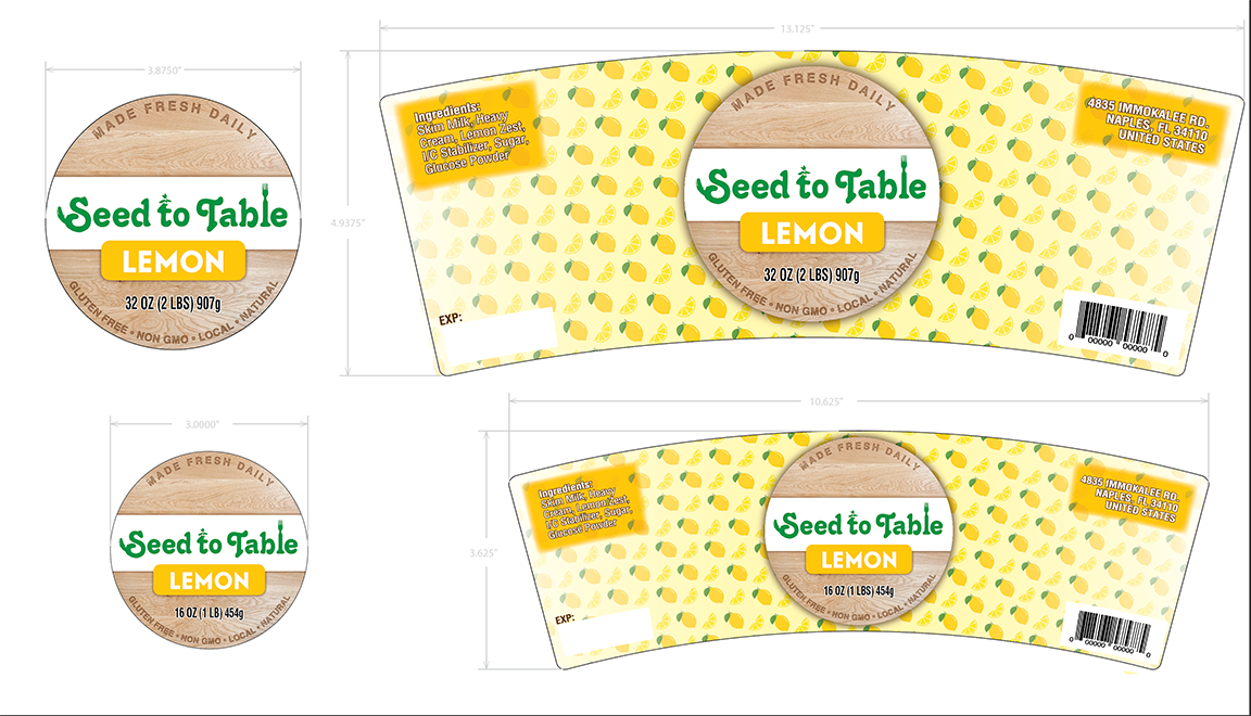 Seed to Table is a Florida based supermarket chain. I worked with them to design and develop new and improved labels for their ice cream sold in stores (several flavors).