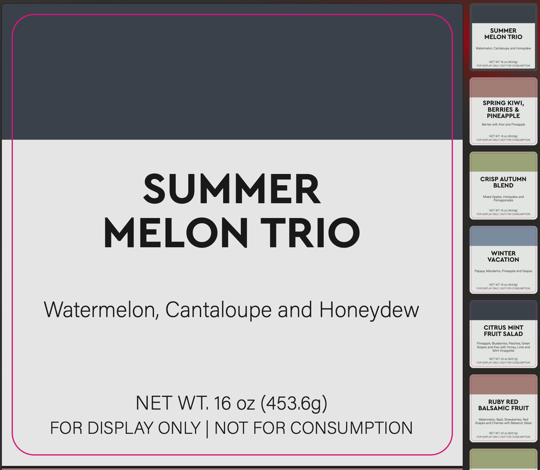In addition to supplying Taylor Farms labels for products sold nationwide, they have also relied on my design services for important marketing and showcase opportunities. The following is a small sample of labels I designed and provided for their booth at the International Dairy Deli and Bakery Association Expo (something I've done for them yearly).